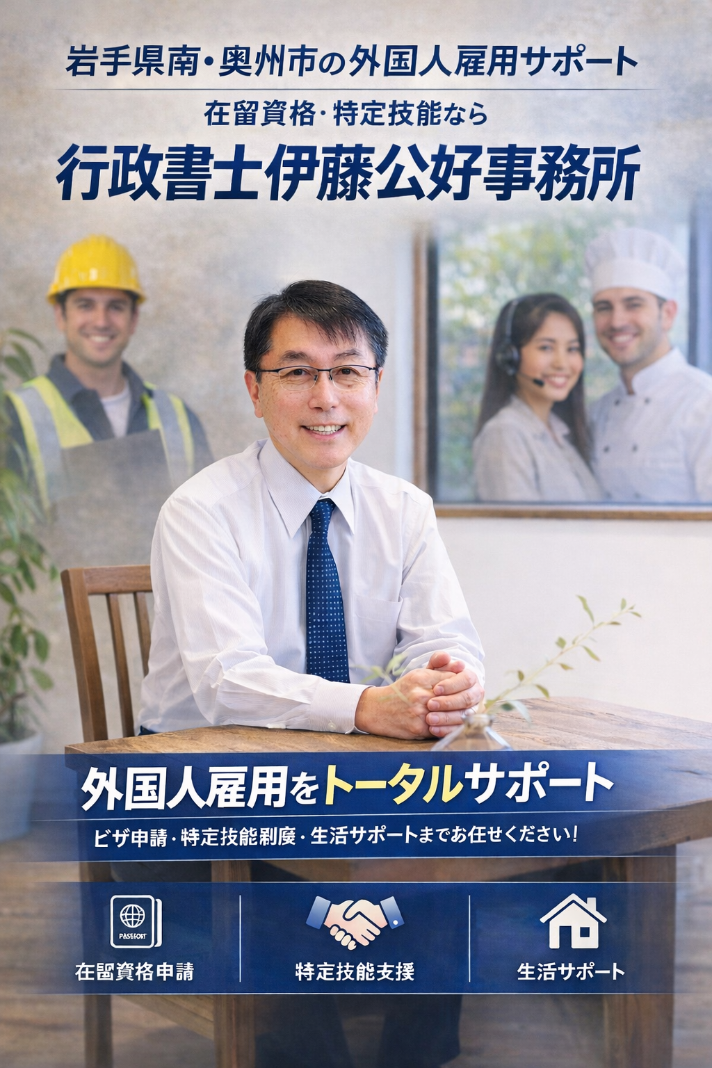 奥州市・北上市・金ケ崎町を中心に、岩手県南エリアの外国人雇用を“手続きから制度対応まで一括サポート”しています。